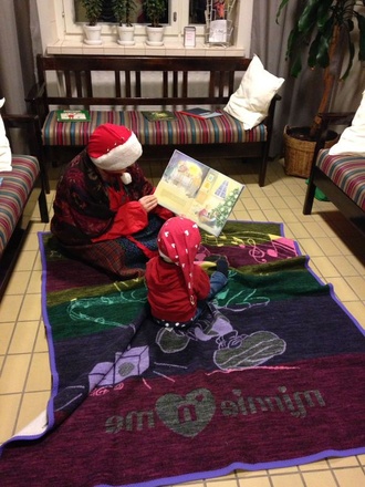 Tarjolla on riisipuuroa ja sekahedelmäsoppaa, sekä höryävää glögiä ja piparia. (Puuroa saa myös maidottomana ja suolattomana.)